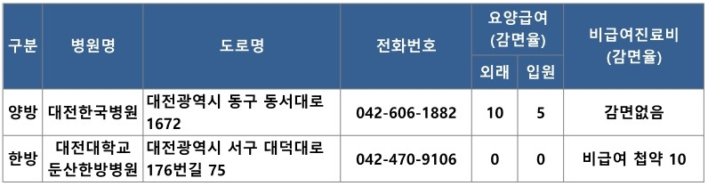 대전, 충남, 충북 지역에 위치한 참전유공자 대상 진료비 할인 병원 현황을 알아보겠습니다.